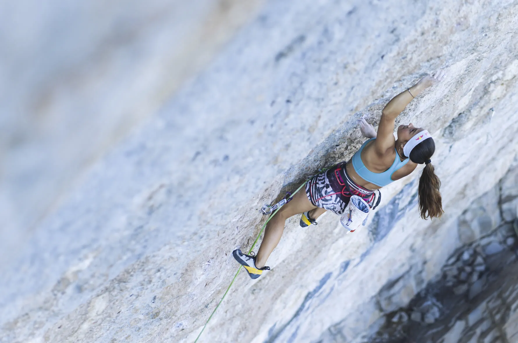 Angie was born in Canberra, Australia, in 2004. At the age of 7 and after falling out of a tree (in which she would frequently scramble around, attempting to reach the most inaccessible branches) Angie’s father decided to take her to the local rock gym where she could explore her obvious passion for climbing in a safer, more controlled environment. Her prodigeous talent was obvious from the outset: she climbed her first 31 (8b) — ‘Swingline’ in Red River Gorge, USA, at only 9 years of age; a year later she did ‘Welcome to Tijuana’ 8c (33) in Rodellar, Spain. Angie currently spends 6 months a year in the Blue Mountains, the heart of Australian climbing, and the other 6 months traveling the world, visiting the major climbing destinations in Spain, France and the USA.