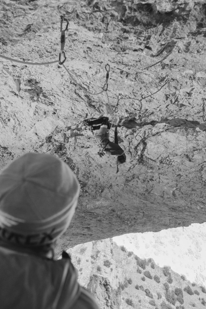 I am very focused, and he loves trying to help and support me in the ways he can when I am involved in my projects. But his friends come to join us regularly in Spain, too, and he has time to climb with them and with us when he wants to. Now I sometimes put up the tope-ropes for him and belay him on his projects!