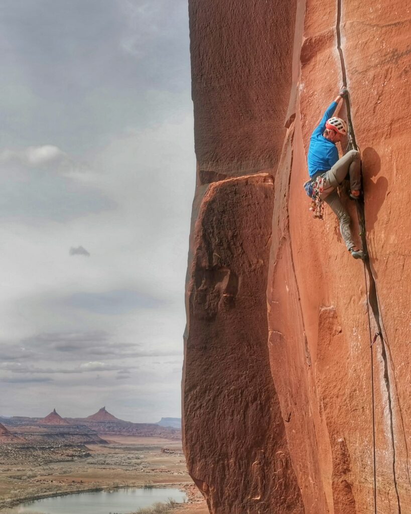 As predominately sport climbers, Todero and Pfister found climbing in America to be unique. In the US, cracks run through the sandstone and the granite allowing for more trad climbing and a mix of bolted lines and trad routes in the same sector. In Europe, these areas, including the cracks would be fully bolted. The combination of cracks and bolts allowed the pair to switch between styles for the day. “It’s been really fun combining trad and sport climbing at the same sector on the same day,” Todero said.
