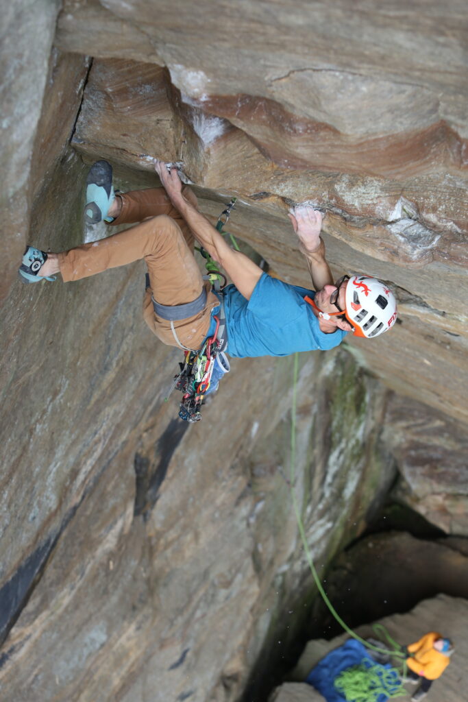 The style of bolting also differed dramatically. After a few days in the Red River Gorge, they realized they needed a stick clip as many of the first bolts tended to be high with hard climbing up to them, a phenomenon that they hadn’t noticed in Europe. They didn’t want to spend $50 on a prebuilt model so they pieced one together with a fishing pole and a piece of PVC tube. Local climbers asked them about their ingenuity. “They would ask us about our excellent $12 model,” Todero said.