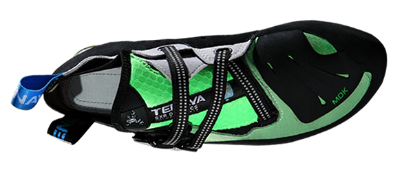 La parte superior de Mundaka viene con una goma en la puntera súper adherente que puedes utilizar en todo tipo de apoyos de punta y empeine y que a su vez protege contra la abrasión y ayuda a la estructura del pie de gato. En vez de lengüeta, Mundaka viene con un fuelle de cinco capas de gran transpirabilidad y de diferente grado de elasticidad, dispuestas para dar la consistencia necesaria y facilitar a su vez un nivel de ajuste y calce perfecto.