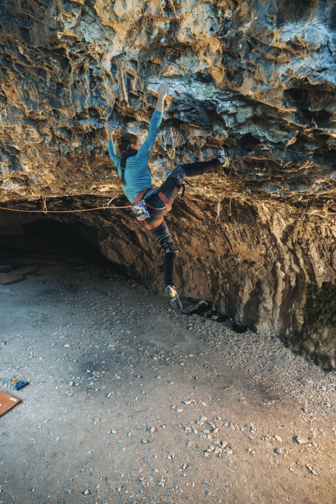 Finally, I tried the route that I was most psyched to climb from the very beginning: an 8A+ (V12) boulder into the Hulk Extension, which creates Proa Fin de Ali Extension (9a/5.14d). I had to fight with every attempt, falling again and again after giving it my all. Yet, having the upper part of the route figured out and the muscle memory from climbing it so many times gave me the confidence to keep trying.