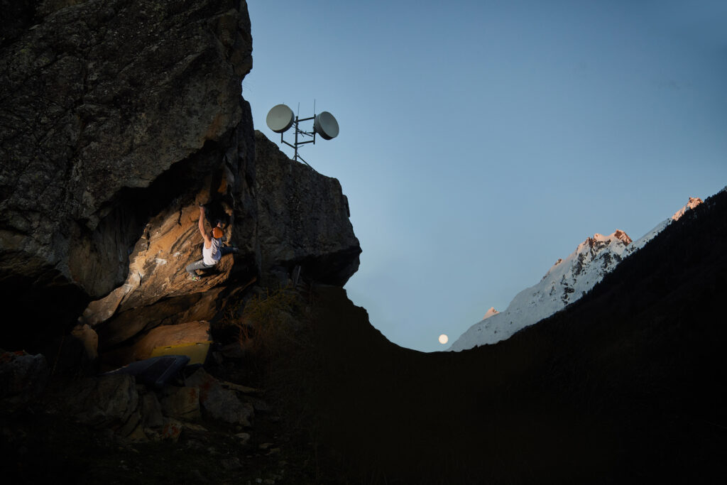 Full moon rising. Vadim Timonov on Blackflip Sit (8C+/9A). Photo: Stepan Chaporov.